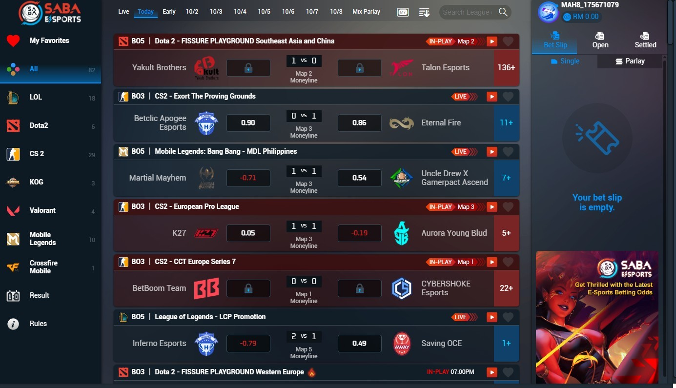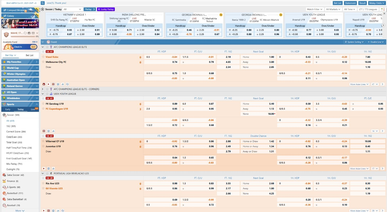 Letakkan pertaruhan pada perlawanan terbesar hari ini bersama sportsbook #1 Malaysia dan nikmati aksi sukan secara langsung dengan odds terbaik & pembayaran pantas!